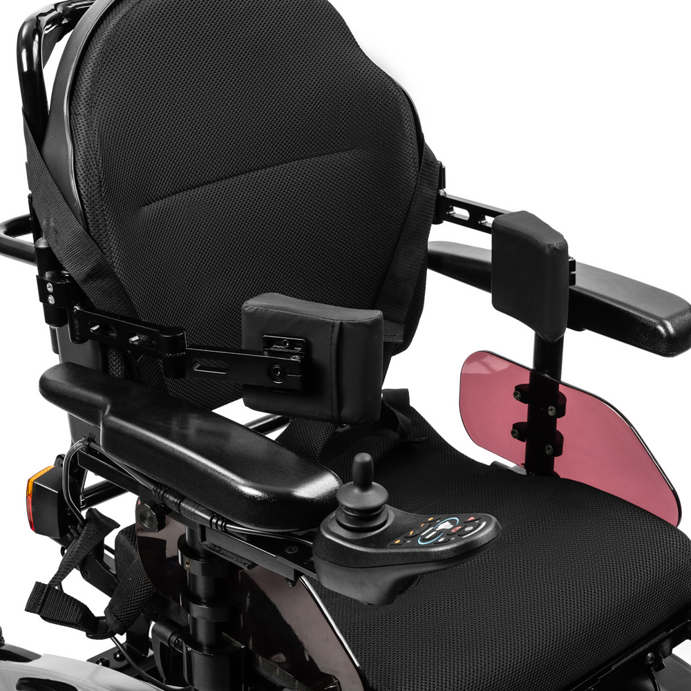Коляска инвалидная с электроприводом Ortonica Pulse 360 – мощная и проходимая коляска, оснащенная емкими свинцово-кислотными аккумуляторами и колесами с внедорожным протектором. Благодаря переднему приводу коляска обладает отличной проходимостью вне городских условий, что позволяет легче справляться с препятствиями и неровностями. Электрорегулировки угла наклона спинки, сиденья и подножек обеспечивают комфортную самостоятельную настройку.
